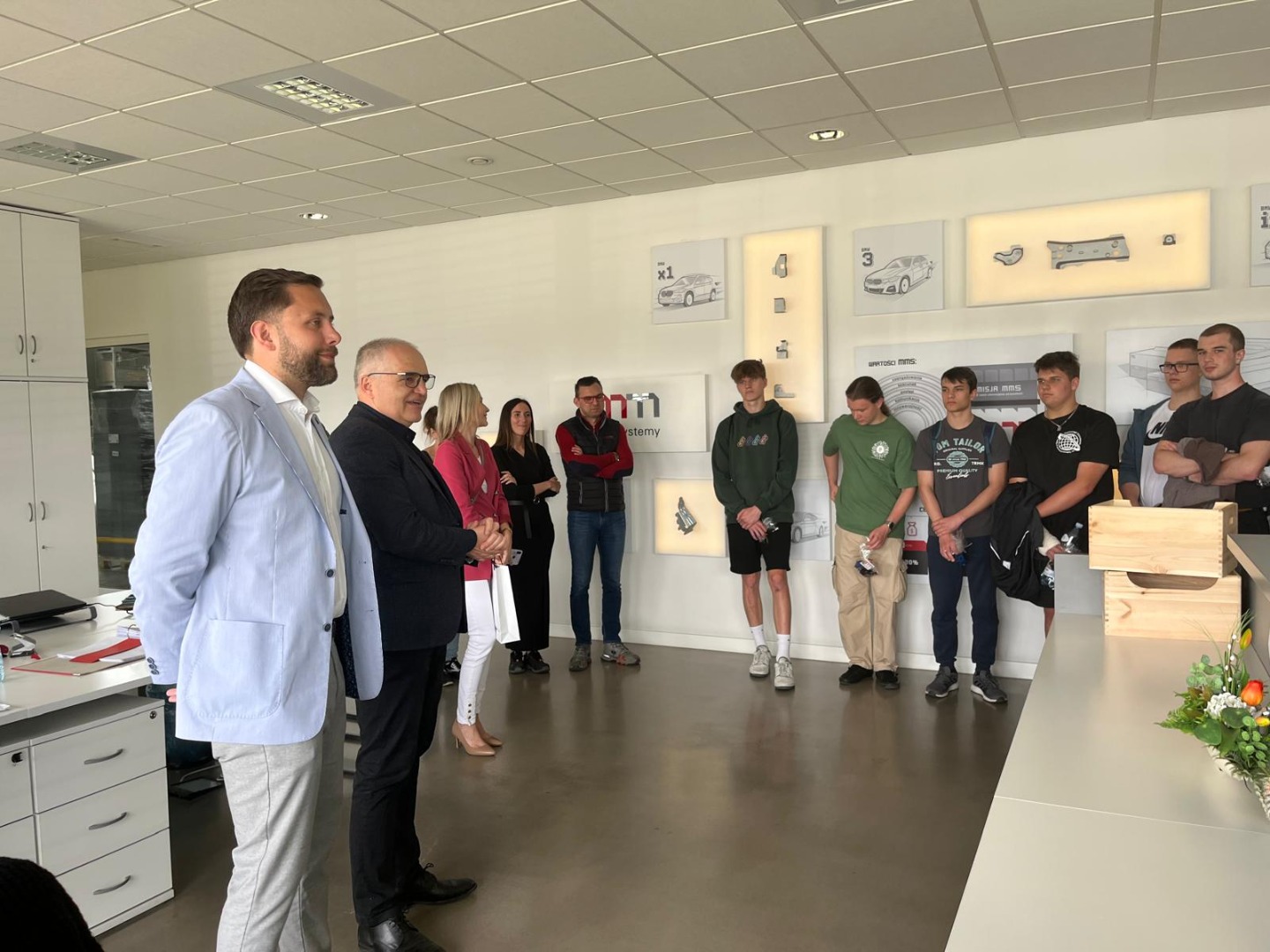 O godzinie 10:00 autokar GTV Bus zabrał 36 osobową grupę młodzieży do Kątów Opolskich, gdzie po wstępnej prezentacji dwie grupy mogły zwiedzieć linię produkcyjną firmy MM Systemy, która jest jednym z wiodących dostawców podzespołów np. takich marek jak BMW czy Bentley.