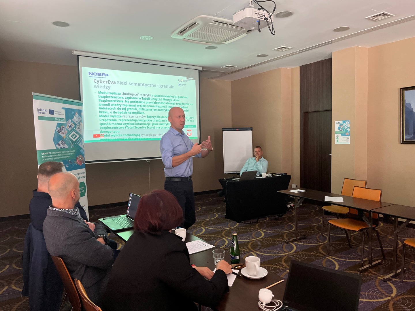Zgromadzanych gości powitał Tomasz Hanzel, Dyrektor OCRG a pierwszą prelekcję na temat międzynarodowej współpracy w obszarze wdrażania RSI oraz działaniach projektu ENAIBLER wygłosił Marcin Staniszewski, Koordynator projektów i współpracy międzynarodowej z Działu Innowacji OCRG.